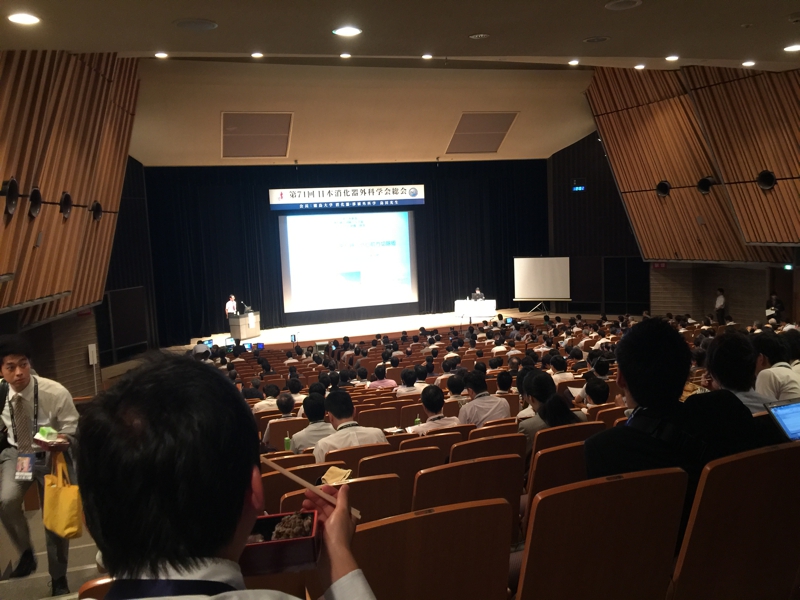 せっかくなので少しだけ講演を聞いて行くことにしました。都立K病院の先生の演題発表、腹腔鏡手術が始まって今までの症例の推移を発表されていました。今や腹腔鏡手術で都内でも最先端を走る公立病院、でも腹腔鏡が始まった初年度は年間で7例? そのベテランの先生でさえ当初は心が折れたとおっしゃっていました。