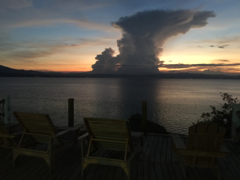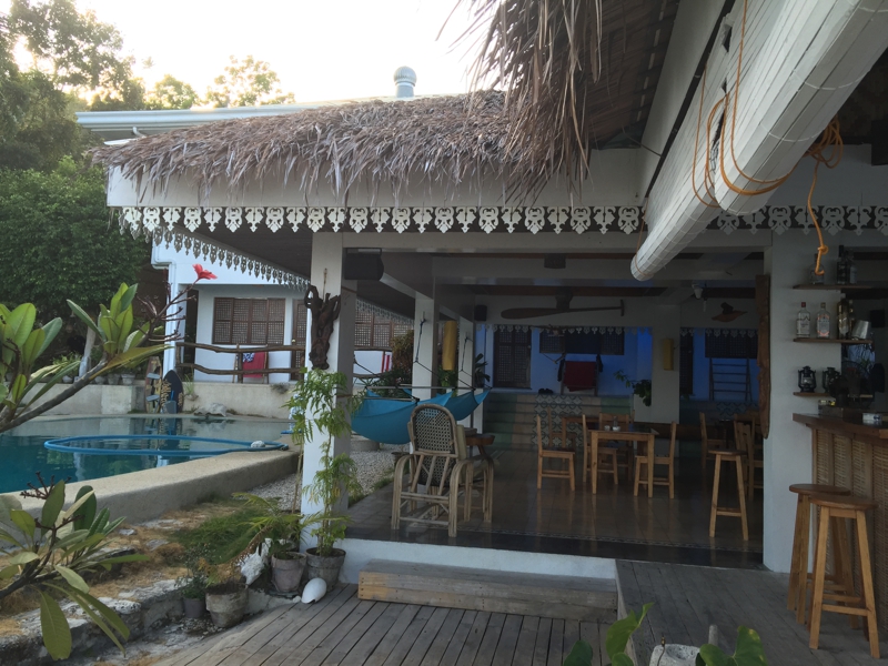 そしてダイニングを横目にベランダまで進んで行くと……、うわ〜!! 最高の景色です。このロッジが崖の上にあることが分かります。ラグーンの海ではないけれど、青々とした澄んだ海が広がります。向こう側には別の島、そう、ネグロス島が見えます。頑張れば泳いでも行けそうな距離に感じます。