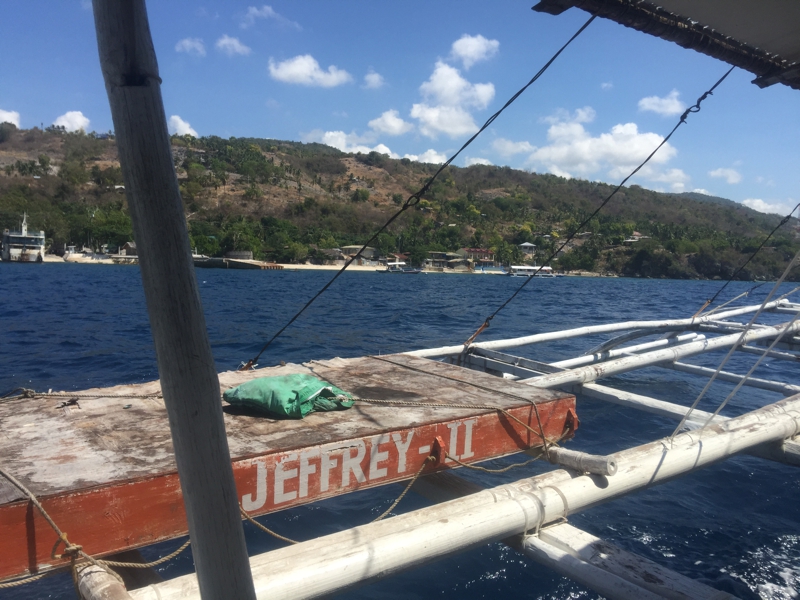 朝食を食べてまもなく出発です。ジンベイザメに会いに行きます。すでにチャーターされているジプニーが迎えに来ていました。途中で数組のゲストを拾って行くとのこと、日本人ばかりで、「初めまして!」の挨拶が飛び交います。ここからのんびり走って船着場まで約15分でした。