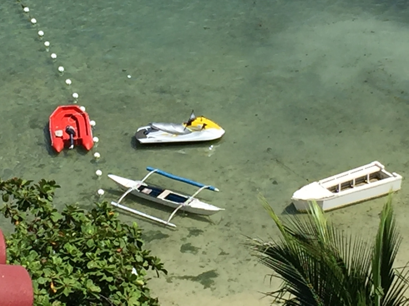 実は沖合までこいつで来ました。マリンジェットを借りました。ヤマハの4トローク、なかなかパワーがあり安定も良かったです。ホテルで借りたのですが割と格安、1時間マクタン島沖の海を走り廻りました。今回はパラセーリングはいいや........。ああ〜! 最高!!