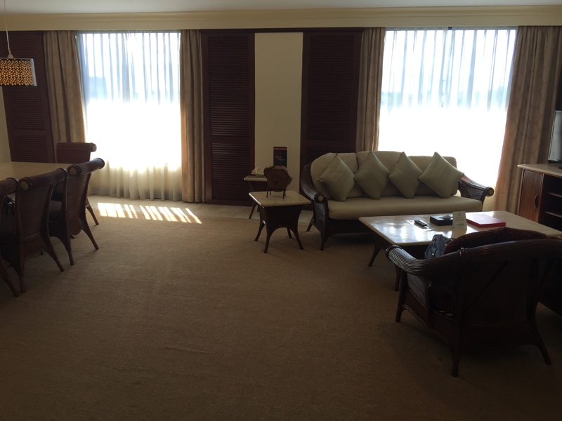 少し早めについたのですが、結局2時のチェックインタイムまで待たされました。通されたのは最上階のクラブフロア、今回もスイートルームにアップグレードしてくれました。ただ........、無駄に広いような感じ、7〜8人で会議が開けるようなテーブルと椅子があります。また別に応接セットが。