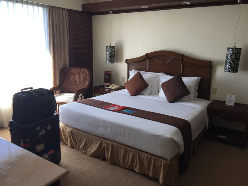 ベッドルームは広過ぎず狭過ぎず、適度な広さ。そしてキングサイズのベッドです。まぁここには一泊だけ、明日の飛行場へのアクセスを考えてここを取りました。前のリゾートホテルにもう1泊する必要はなさそう、むしろこちらの方がいろいろな処にアクセスが良さそうです。
