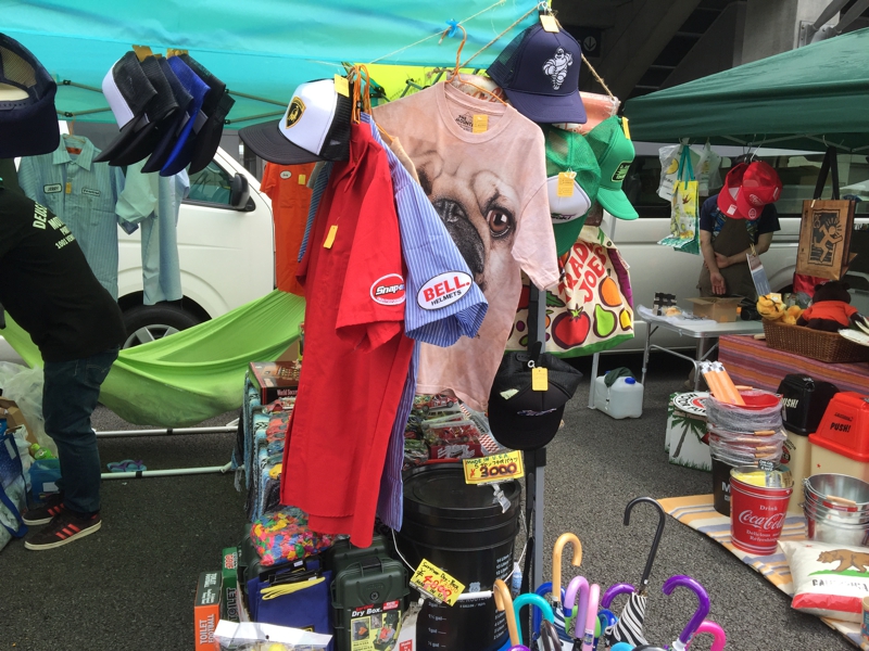 パレード・ランが終わり、バイクを所定の場所に停めてフェスティバルの会場へ向かう事にしました。僕はこんな出店を見て回るのが大好き、衣類やアクセサリーパーツなど、ついつい衝動買いしてしまう事がしばしばあります。今日もバイクで走る事はもちろん、こんな出店を見て歩くのも目的の一つ、これからが楽しみなのです。Tシャツかポロシャツ、良いのがあれば買うつもりでいました。
