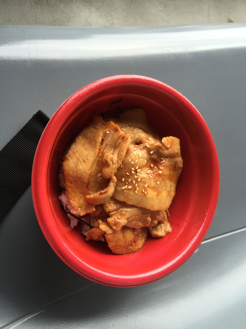 バイクを盗まれていないことを確認してからT君と一緒に食べるべく、このサーキットの名物、生姜焼き丼を買って行く事にしました。友人からも美味しいから是非食べて来いと言われていました。さっきは結構並んでいたのに、もう午後二時近くになったら空いている? と思ったら注文してから20分くらい待たされました。整理券を配ってかなりの人数が待っていました。でも最高に美味しかった!