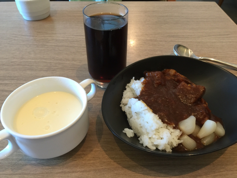 更にカレーライスにコーンスープも。ちょっと苦しいくらいに食べ過ぎました。「あいつ、よく食うなぁ。」なんてスタッフが見ていないでしょうか? でも正直なところ、最近は機内食はあまり期待していないのです。10年前の機内食は美味しかった、しかし街の洋食屋さんと言うシリーズになってから……。