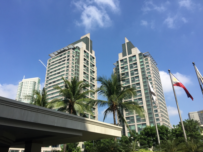 朝は気分良く目が醒めました。ここはマカティ地区、治安は良く、大きなショッピングセンターがたくさん並び、まるで都会の賑やかさですが海を感じる事は出来ません。窓を開けると目の前は高級ホテルとショッピングセンター、あちらはホテル検索のホームページでトップに来るお値段の張るホテルです。