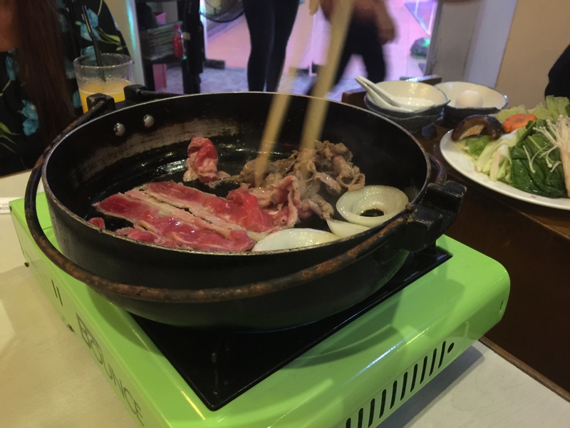 すき焼きを食べる事に、わざわざマニラに来て日本食? と思われるかも知れませんが、なかなかフィリピン料理ってないのです。しかもあまり美味しくない。バンコクへ行ったら目一杯タイ料理を食べますが、フィリピンではついつい日本食が多くなります。しゃぶしゃぶもなかなか美味しいです。