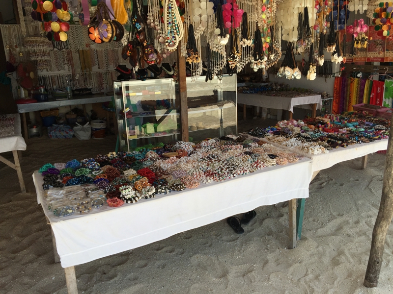 そう! この土産物屋さんの先がアジアBest5に入るプカ・シェルビーチなのです。昨年はここでクリニックのスタッフ用にショールを10枚も買って行きました。あまりディスカウントにはならなかった。今年はもう買わないぜ……。隅っこの駐輪場にバイクを置いてビーチに出ます。