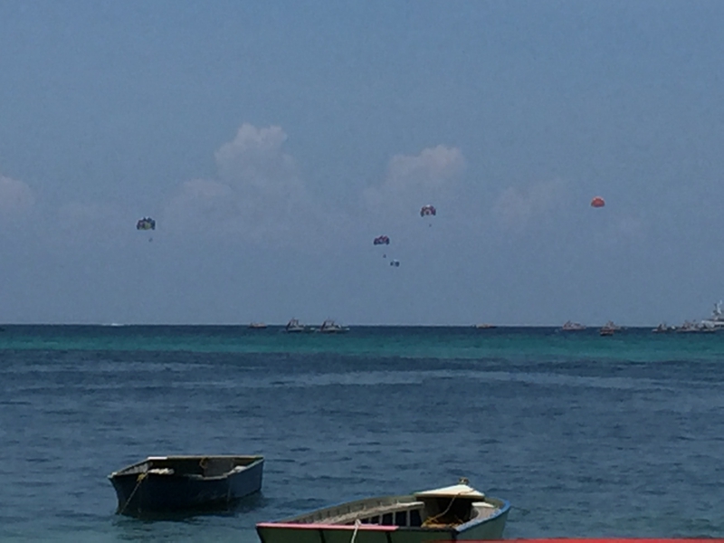 パラセーリングをやっていました。昨年、ホワイトビーチで呼び込みの男に誘われました。今度来たときにね、と逃げましたが、今年は付き合ってやろうと探したのですがいませんでした。名前を覚えていたので、ビーチボーイに尋ねたのですが知らないようでした。今年はやってみるか!?
