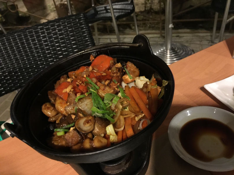 結構いろいろな店が混んでいて右往左往しました。ゆっくりしたくて空いている店へ。ちょっと訳の分からない寿司に鍋料理を。日本食の店ではあるのですが、到底日本食とは思えない、鉄板焼きも、ラーメンも、寿司も、何でもありの店で下。味はまぁまぁってところかな?