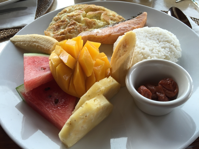 今日はJapanese breakfastをオーダー、しかし……、ど〜ぉ見てもJapaneseには見えない、確かに昨年なかった梅干しはある、昨年あった美味しかった焼いた鮭もある、でもどうして洋風にもられたご飯、そしてオムレツ? まぁ味はそこそこかな? 取り敢えず腹八分目で朝食は終わり。