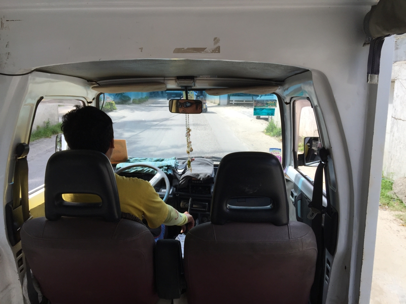 結構あくせくしながら出発となりました。pick upのジプニーは約束の時間通りに待機、これに乗って昨日パラセーリングをやっていたホワイトビーチと反対側へ向かいます。防水のデジカメは持って来た、それにiPhoneを入れる専用にビニールの復路も持ってきました。