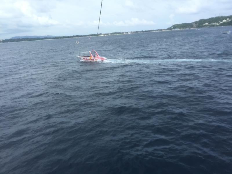 びっくりしました。パラセーリングがあんな快感なんて。病付きになりそうです。しかしあのスタッフ達は相当慣れていそう、非常に安定していました。下手な奴に当たったらきっと怖い思いをするんだろうな? 思い切ってやってみて良かったです。マリンジェットはそろそろ飽きて来たかな? 同じコースをグルグル廻るなんてつまらないです。やはり好きな所に吹っ飛んで行きたい。明日は何もしない一日と決めています。雨で動き難そう、ホテルでのんびりもまた一興です。