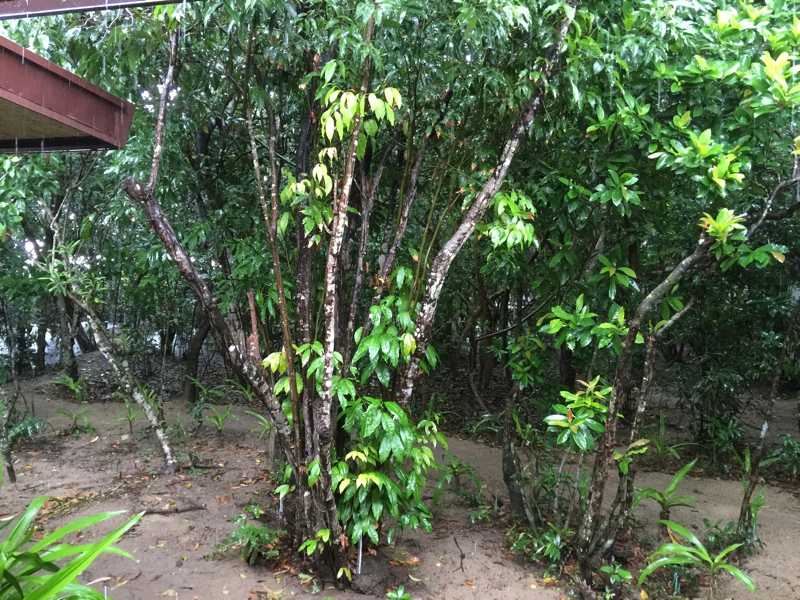 朝はやはりしゃきっと目が覚めました。ちんけなホテルでも決して居心地が悪い訳ではない、クーラーも良く利きました。でも外に出ると天気は良くない、部屋の周りの木々は雨に濡れていました。明日晴れてくれれば良いんだけれど。もう一日このホテルで過ごします。