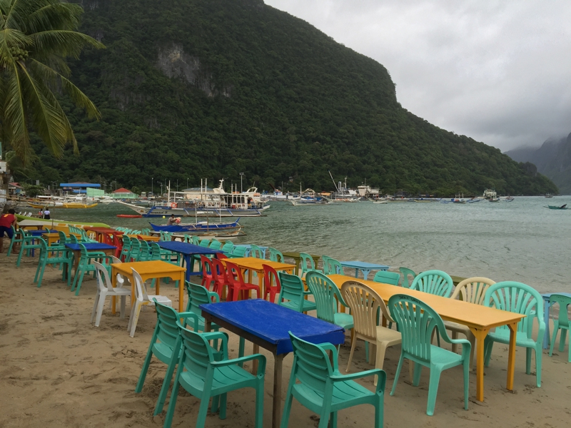 第3日目、 昨日はマニラからここパラワン島のエルニドまで来ました。初めて足を踏み入れる地、心躍ります。しかし……、お天気はあまり良くない、せっかく昨日はレンタルバイクを借りたのに濡れることもあり、今日の夕方まで借りたころ、早々に返していまいました。でも初めて観たエルニド・タウン、そこは歩いていて何となく嬉しくなるような街、物価はそれほど高くなく、食べ物も新鮮な海の幸を含めて美味しい、そしてところどころ洒落たレストランやカフェも多く、未だ未開拓のリゾート・タウンと言う印象を持ちました。開拓され過ぎると物価が上がり、悪い奴らも徘徊しはじめる、この素朴さを大切にしてほしいと思いました。
