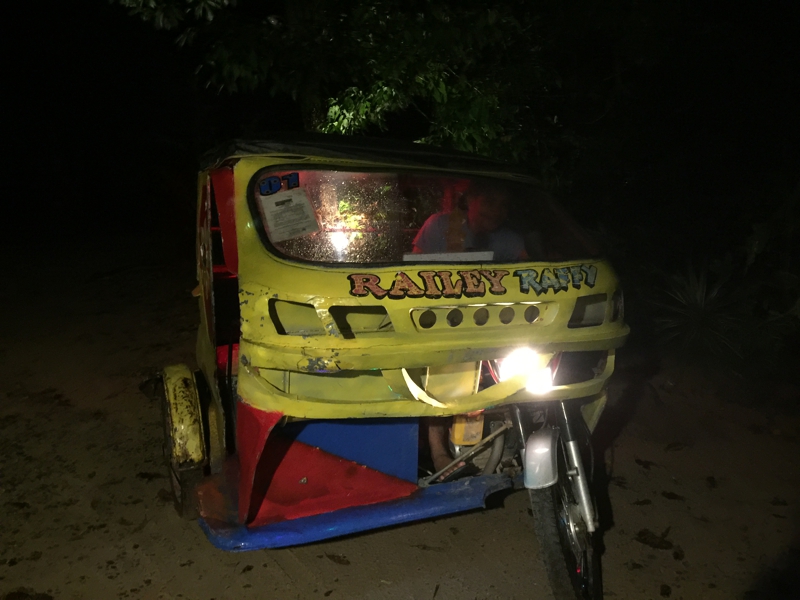 実は6時間で借りたバイクは3時間でまた返してしまったのです。これまた返金なし、結局トライシクルで帰ることにしました……。○○リゾートまでいくら? そうドライバーに尋ねると「昨日の夜と同じだよ。」ありゃ? 昨日のドライバーでした。じゃぁ、よろしく。
