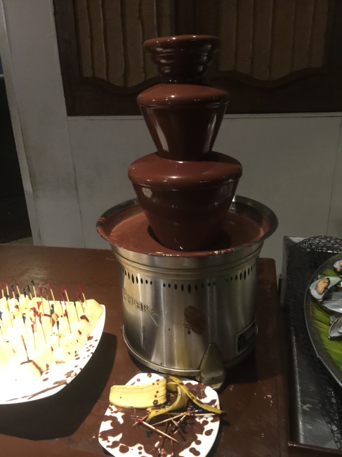 午後7時から午後9時迄がこのホテルでのディナータイム、割と7時ピッタリにダイニングに飛び込むゲストは多くありません。7時ピッタリに来ると席は未だガラガラです。こんなのがあります、そう、子供も実は結構多いのです。子供達はこの廻りに群がります。