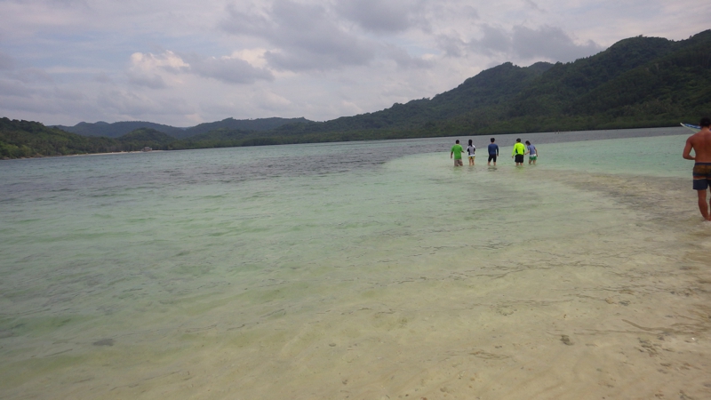 30分足らずのクルージングの後無人島に到着(島の名前は聞き損ねた(><))、船から降りて島に上陸しました。ここは足を濡らさないと上陸出来ない島、事前に水着を着て濡れても構わないような支度をするよう指示は受けています。海はそれほど青くありません。
