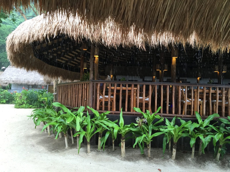 船での送迎は昼食後、でもチェックアウトの手続きもあるので早めに出てきました。しかし昼食迄にもう少し時間がある、ビーチ前のバーで少しのんびりする事にしました。昨夜も少しこのバーで飲んだのです。まぁ、これから船や飛行機に乗るのでアルコールは抜きにしてマンゴージュースを。