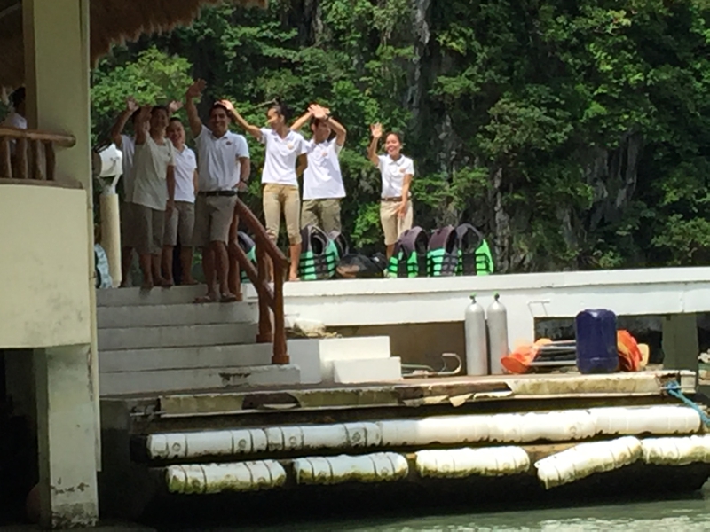 約束の時刻、午後1時にこの桟橋へ。思い残す事はありません! 但し、僕はまた必ず此処に来ます。来年はちょっと無理、別に行きたい処があります。一週間の長期休暇を取れる時期、やはり二年後の夏休みか? 出来れば8月は台風を勘案して外したいところ…、大勢のスタッフが手を振ってお別れ。