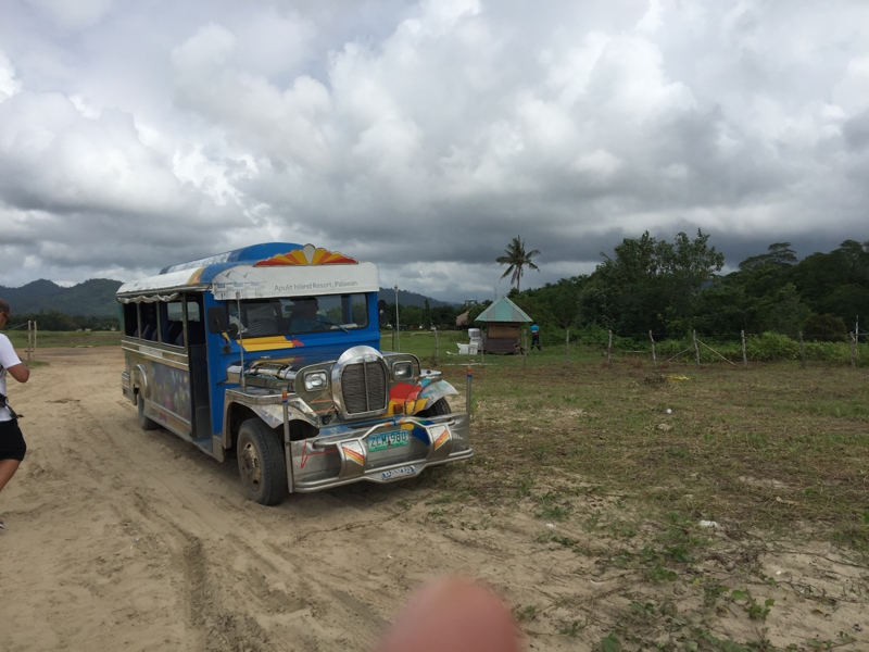 ゲスト全員が乗るとおもむろにジプニーは動き出しました。僕のトローリーもちゃんと後ろに積んでくれています。そう、確か行きの飛行機は海の上から滑走路に入ってきました。パラワン島本島、未だここでは島の幅はそこそこあるはず、と言う事はマニラからここでグルッと旋回した?