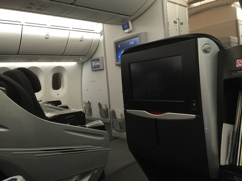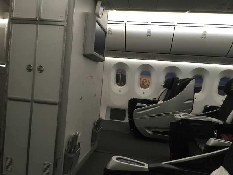 Today's airplane was B-787. I am disagreeable, doesn't it vomit smoke from a battery? And return to the departure airport again? I like B-767 which I rode and was becoming tame. Although the line sheet of 767 becomes a full flat, a form which pushes in a lower half of my body into that tunnel. I want to ride on B-747 which I do not so like again.