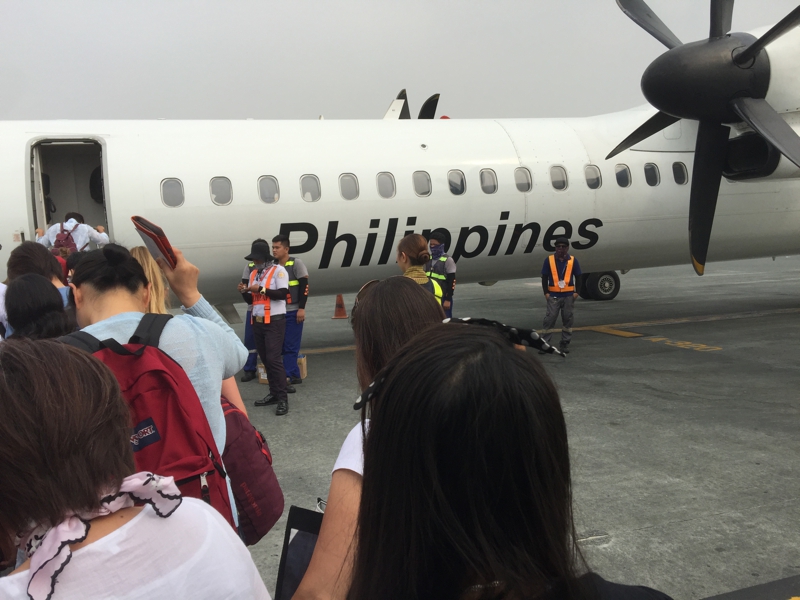 この辺の飛行機をインターネットで気軽に取れるようなテクニックを持っていれば、もっとフィリピン国内、更に他の東南アジアでの旅行ももっとあちらこちらに出向けるのではないか? そう思います。狭い機内はほぼ満席、それもやはり西欧人が多いよう。知る人ぞ知る秘境? 楽しみです。