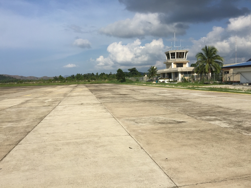 この空港も田舎のすごい処だと聞いていました。しかし何の何の、立派にコンクリートで舗装されて、しかもかなり広い。エルニド空港の方がよほど危なげでした。すぐに飛行機のハッチが開いて、たった5段のタラップを降りて新天地に立ちました。かなり暑い!でもよい天気!