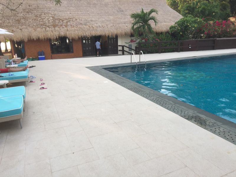 このリゾートには大きなプールがあることを事前に知っていました。もちろん目の前はホワイトサンドのビーチに綺麗な青い海、海でも泳げますが、プールがあればそのプールサイドで転がっているのも一興、暑いせいかプールの水は温水プールのように暖かく、そして海水でした。