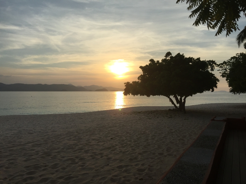 部屋の外に1歩出ればこの景色、もう正に太陽が沈まんとするところです。今はもう仕事のストレスは全くありません。嫌な事は何もかも消し飛んでいます。そう、ここにずっといれば長生き出来るだろうな? 短い時間ではありますが、リゾート気分を満喫するには此処は良い選択でした♪
