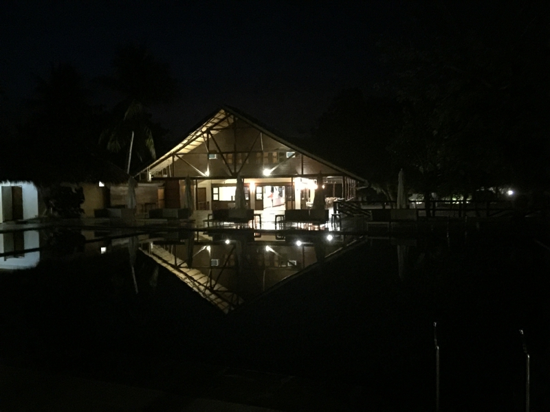 お腹を満たして部屋に戻ります。1周1-2kmの小さな島、遠く迄来ました。外に出ると本当に静か、しかし鳥ではなくコウモリの鳴き声が。あまり明るい照明もなく、夜空には星が綺麗、東京の4-5倍の数の星が輝いていました。今夜は居心地良い部屋でゆっくり眠れそう、早速スローダウンです。