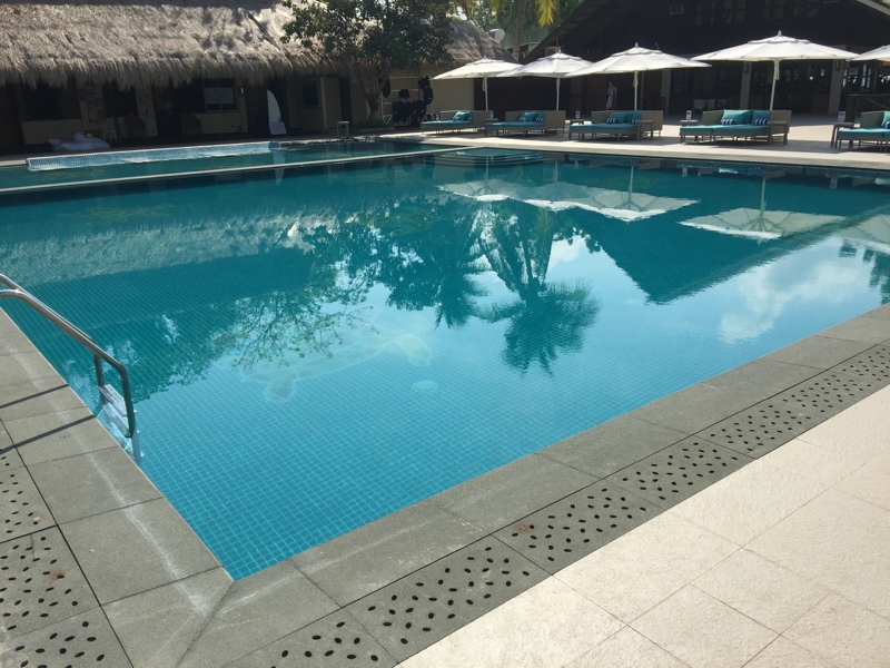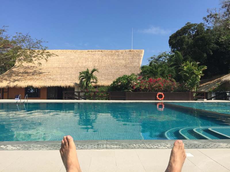 ビーチサイドに転がっていてもとにかく暑い、フィリピンですらこれだけの暑さは珍しいです。それがまたリゾート気分を盛り上げます。プールの水はむしろ暖かすぎるので、時々海の水に浸かります。こちらに来れば多少熱を持った身体を冷やしてくれます。陽射しも強くたっぷり陽焼けしました。