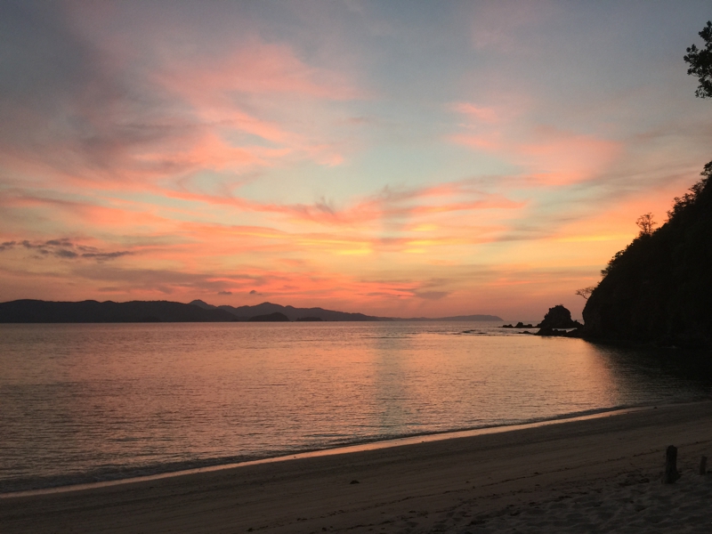 お天気に恵まれました。エルニドでは結構雨が降って気分が塞がる場面も多々ありましたが、今回は大丈夫そう、乾期の一番良い季節ですから。空も真っ青、やはり空気の淀んだ都会では味わえない雰囲気です。はるばる遠く迄来ました。最高の気分です! 生きていて良かったぁ!!