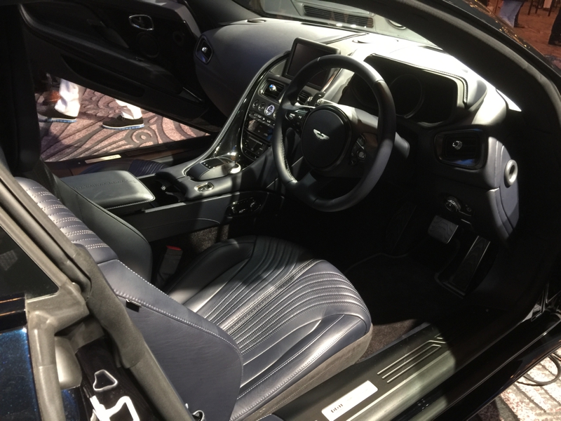 そしてこちらにも座れました。何故かDB11は右ハンドル車が用意されていました。英国は日本と同じ左側通行だから右ハンドルで良いのだけれど、やはり左ハンドルの方が外車という雰囲気を持ち、しっくり来ます。英国は日本より厳しく、左ハンドルの車は走行禁止、右ハンドルのフェラーリやランボルギーニを運転したいとは思いません。居住性はバンキッシュとあまり変わらなそう。