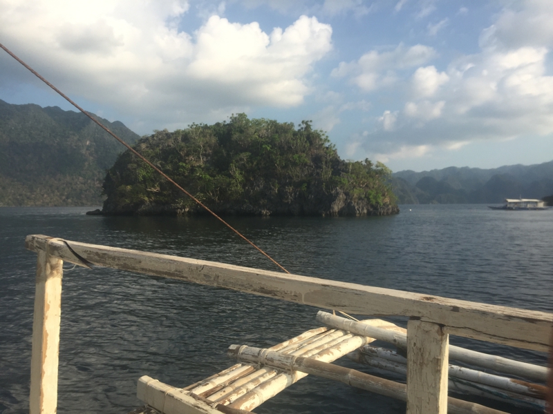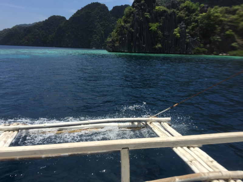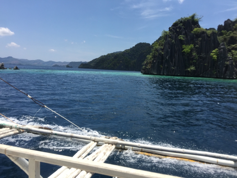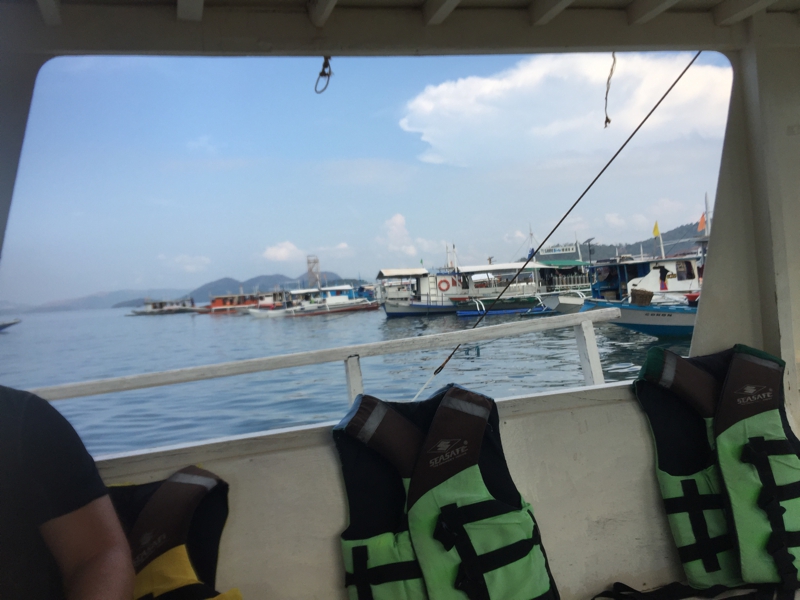 ちょうどでっかい船が港を出て行くところでした。何処へ行くんだろう? 4-5時間でエルニド? 或いはパラワン島最大の街プエルト・プリンセサ? そんな行く先を決めずにのんびりと船に乗って島を巡るアイランド・ホッピングが夢ですが、それを実現出来る迄生きているかどうか?