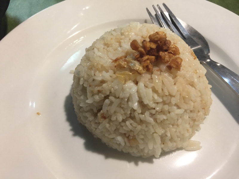 ガーリックライスも頼みました。やっぱフィリピン米は日本の米に比べるとあまり美味くはない、しかしガーリッグライスにすると臭みも消え、まぁまぁの味になります。日本のように炒飯にするのではなく、ニンニクと一緒に炊き込むのです。これで60ペソ、130円くらい。