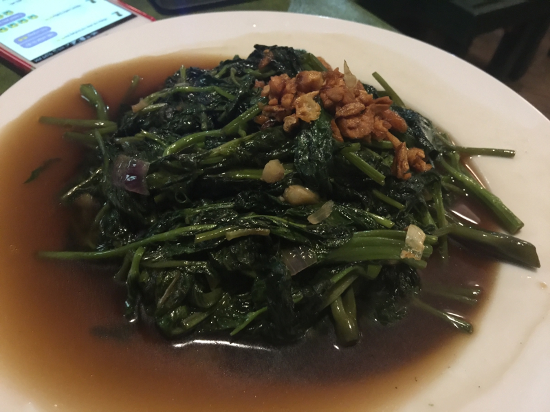菜っ葉のガーリック炒めも。野菜も忘れずに摂取します。こんな食事で僕には充分、昨夜のようにそこそこ高い金を出してホテルで食べるくらいなら、こんなお店で安い料理の方が身体にも財布にも優しい。今日一日、今回の旅行のメインイベントが終わりました。明日もちょっと冒険に出ます♪