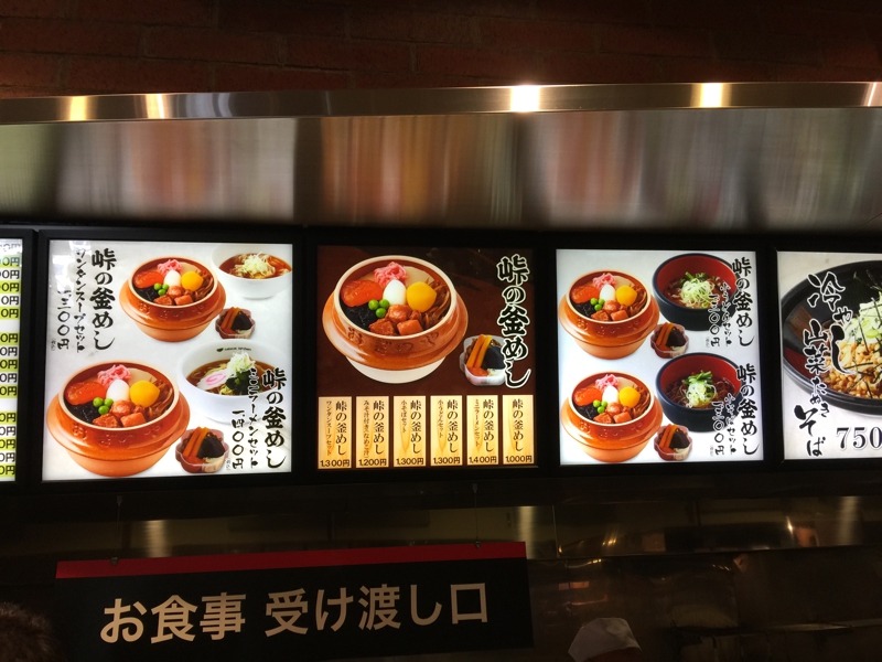 やっぱり峠の釜めしでしょう? 新幹線が出来て横川駅で峠を越える動力車を連結する必要がなくなり、一時期は店の存続も危ぶまれたようですが、今なお元気に営業しているようでした。かつて子供の頃はこちら方面にスキーをしに来て、横川駅に停車中に釜飯を買うのは定番でした。当時に比べだいぶ売り上げは減ったかもしれないけれど、一方で駅弁ブームもありましたから。