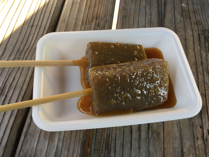 ありました! どうやら下仁田はネギだけではなくコンニャクも名産のよう。今日は何だかんだと言って色々なものを食べ、そこそこ良い運動をしながらも結構なカロリーを摂取しています。でもコンニャクは低カロリーだから大丈夫でしょう? ここでも30分ほど休む事になりましたが、出発直線にそのコンニャクをいただく事になりました。もう夕刻の4時頃、家に着くのは8時過ぎかな?
