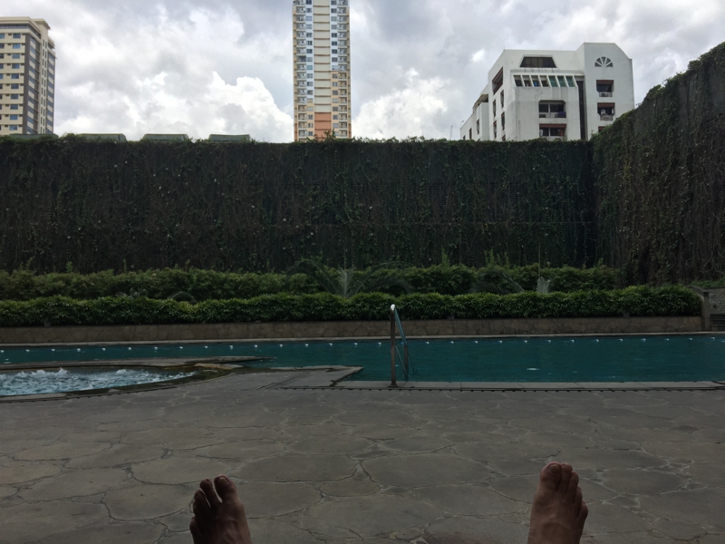 あいにく天気はあまり良くありません。まぁ、陽焼けはもう良いか? ブスアンガ島で目一杯陽焼けしてきましたから。このホテルのプールは元々日当りが良くなく、ただ転がっているだけで良しとすべきか? 曇り空でそれほど暑くはなく。時々温水のジャグジーに入ったりして過ごしました。