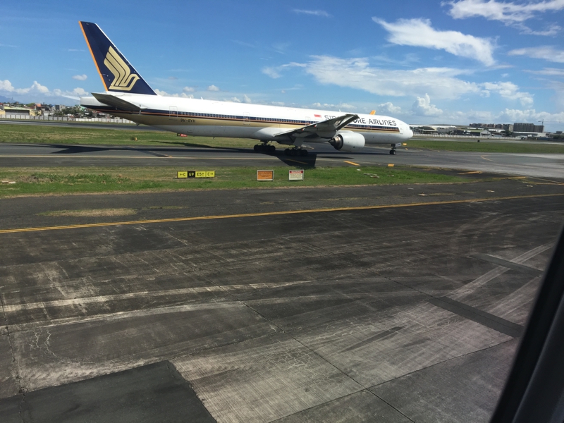 僕の乗った飛行機は定刻にハッチが閉まり、滑走路へ向かいます。ありゃ? SQ!? そう、3ヶ月後には正にあのフライトでシンガポールへ向かいます。ここから4時間? 日本に帰るのとあまり時間は変わりません。すると到着は6時頃? 時差を考えれば東京よりは早い時刻に着きます。