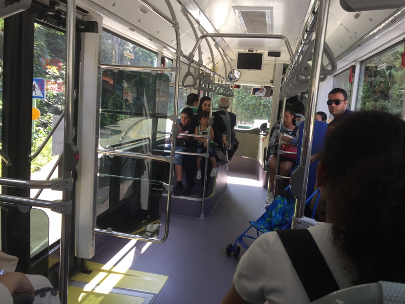 また例の無料シャトルバスに乗ります。送迎のタクシードライバーから、ホテルに宿泊しているゲストであることを示すパスを持って、バスの運転手に見せるように言われていましたが、それを確認する様子はなし、別にホテルの宿泊客ではなくても乗れてしまうような雰囲気でした。バスは大体10-15分おきくらいに来るみたい、明日は別の移動手段をとる事になります。バスはあまり混みません。