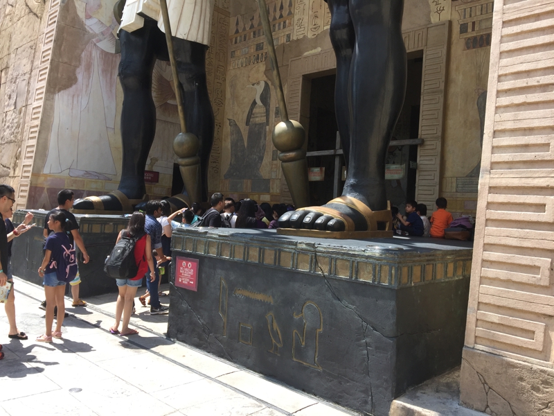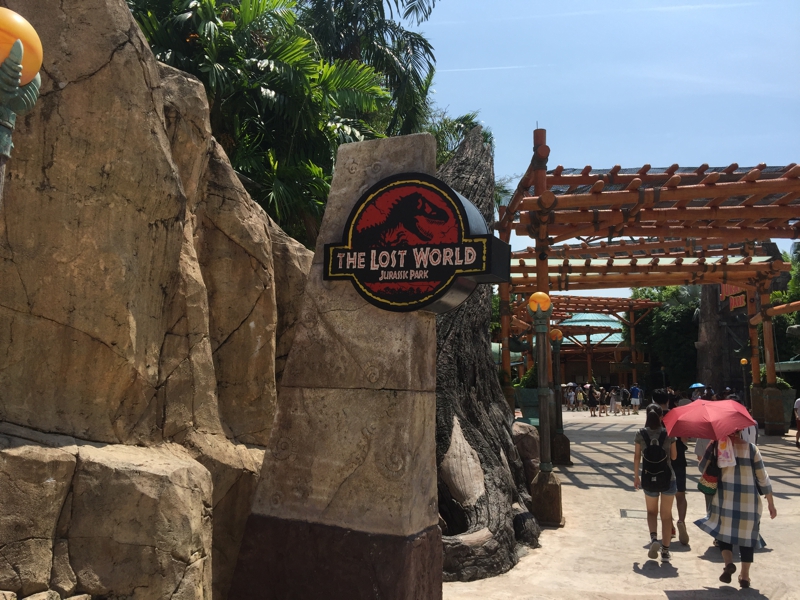 ここはジュラシック・パークがテーマ? 恐らくは人気のあるコーナーなのだろうけど、あまり人の出入りはないようでした。恐らくは恐竜に出会うようなアトラクションがあるのか? まぁ、僕自身はそのエリアに足を踏み入れる事なく、そのまま素通りです。恐らく恐竜のフィギュア等を売るショップもあるのではないでしょうか? そこそこ暑く、結構汗をかきました。陽焼けも出来そう。