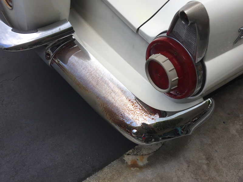 あ〜っ! 残念……、憧れの彼女が乗っていたベビーサンダーも、60年もの歳月を通り抜けて来た結果、メッキのバンパーがだいぶ錆び付いていました。恐らくは時に急な雨でボディを濡らしてしまう事もあるでしょう。メッキ磨きで良く磨いてやればこれくらいの錆は目立たなくなるのでしょうか? 僕と同じ歳、僕自身も錆び付かないよう、常に自分自身を磨くことを心掛けましょう。