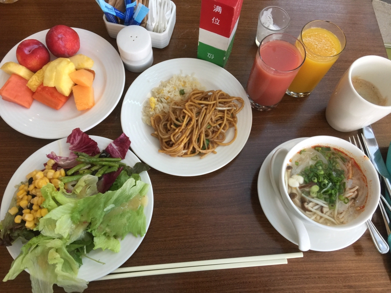 ここでの朝食は3回目、昨日は室内、一昨日は室外のテラス席でした。だから今日はまた外で。今日は少し時刻が早い為か、未だレストランは空いています。確かにここの朝食ビュッフェはなかなか、種類豊富で、味も大したものです。ドリンクも種類がたくさん、珈琲は時間がかかりますが、1回1回豆を挽くところから始まる珈琲サーバー、これもなかなか美味しい珈琲が供されます。
