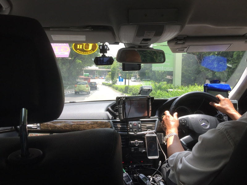 この車、電子機器がすごい! ナビゲーションのモニター以外に何やら携帯電話がスマホとガラケーと3台くらいぶら下がっていました。走っている最中にも電話が鳴り、応対していました。シンガポールでは運転中の通話も良いのか? 考えてみればそんなにうるさいのは日本だけのような気がします。僕としては運転中だけではなく、ながらスマホも取り締まって欲しいと思うのですが。