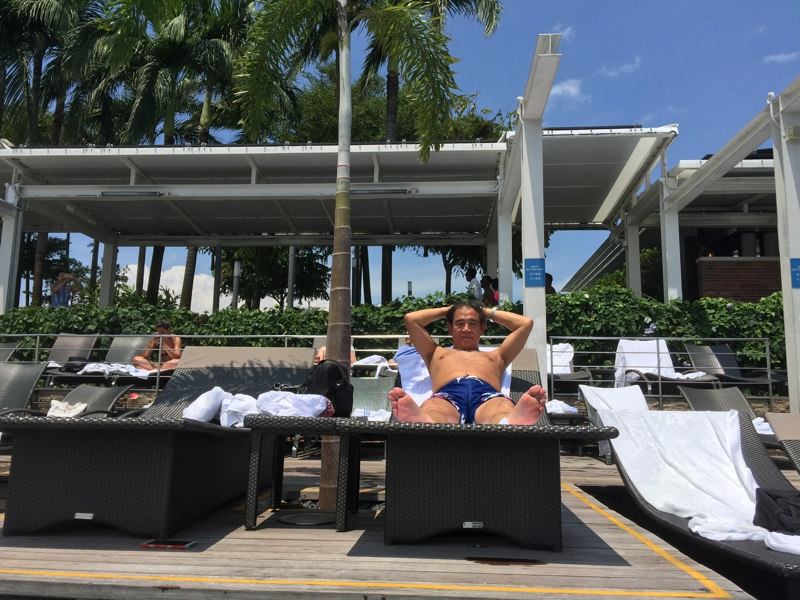 この天空のプールに3時間程いました。時々水に浸かっては再びデッキチェアに転がり日光浴、陽射しは強いながらも、フィリピンのような肌に刺す日光ではなく、辛い事はありません。でも結構灼けました。今後も何回かこのプールには来ることにしますが、正直なところ1回訪れればそれで良いかな? また数年後、改めて出直すような事はないのではないか? との予感がありました。