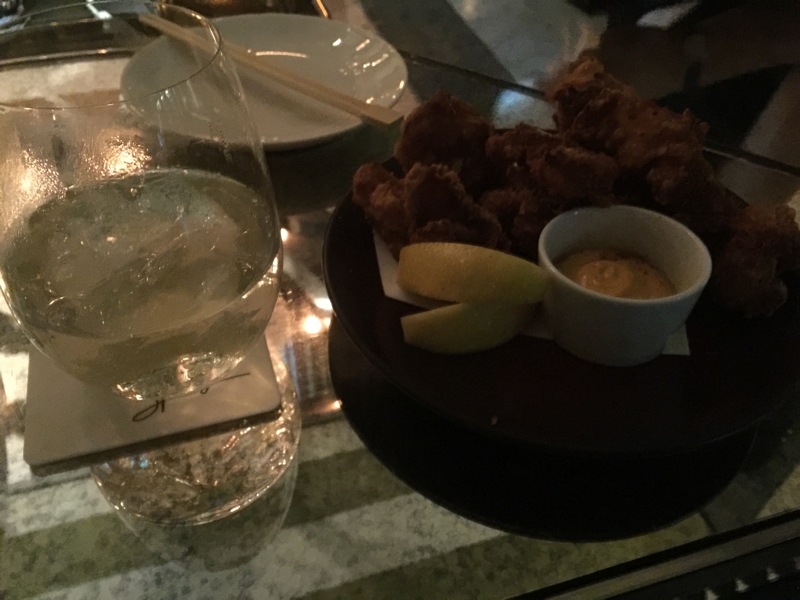 この雰囲気、なかなか、です。バーテンさん達はかなり忙しそう、次から次へとオーダーをこなしています。ゆっくり客と雑談する暇はなさそう、こんな風にほったらかしにされるのもなかなかの快感です。そう、小腹が空いていたのでフライド・チキンをオーダー、結構美味しかったです。あまり酔うことなく、夜景に酔いました。お腹もそこそそこ満たされ、小一時間程バーにいて部屋に戻ります。