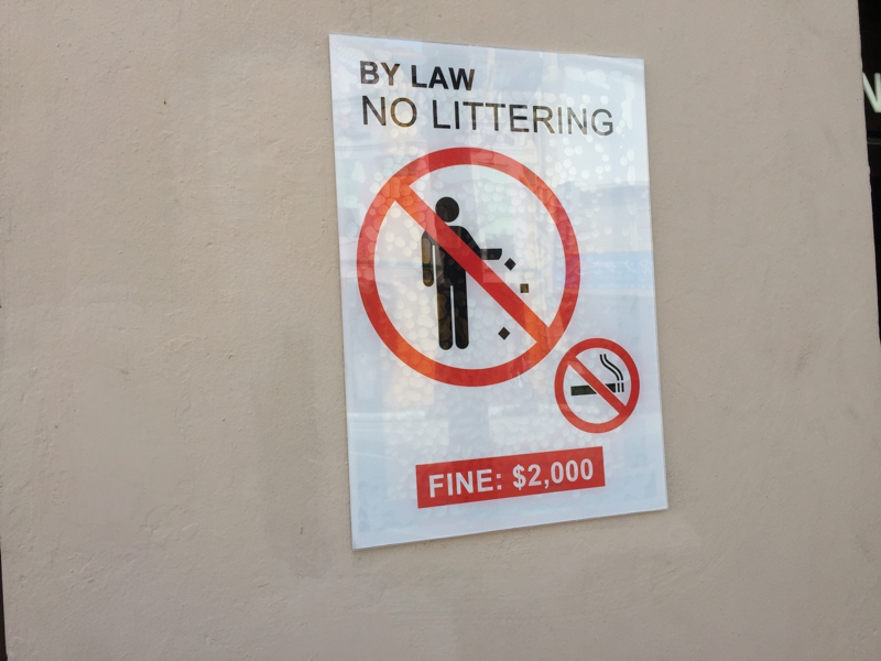 シンガポールと言えば綺麗な街、そこには厳しい法律があります。ゴミのポイ捨ては罰金2000SD(1SDは約85円)、トイレで用を足した後に水を流さないと1000SD、横断歩道ではない処で車道を横断すると1000SD、更にチューインガムは販売はおろか持込みすら厳禁、罰金は何と10000SD(85万円!)だそうです。しかも麻薬に関しては死刑!?
